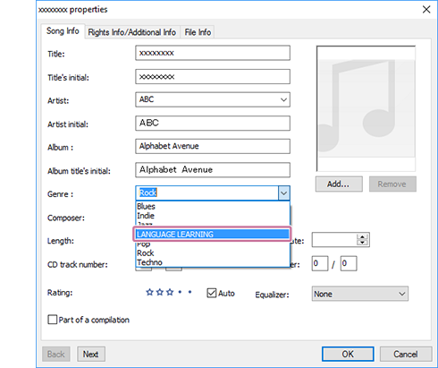 Sélectionnez [Apprentissage linguistique] dans le menu déroulant sous [Genre :]. Puis, cliquez sur [OK].
