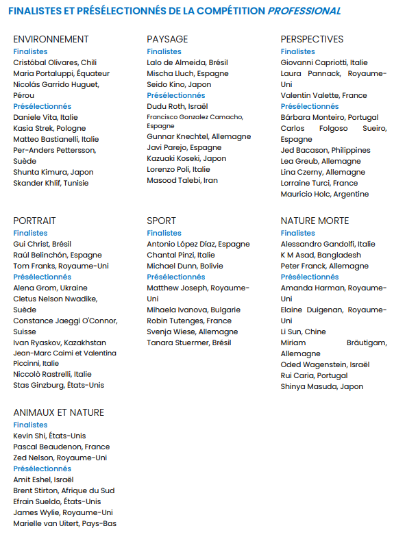 compétition Professional. À travers leurs projets, ces photographes font preuve d’une