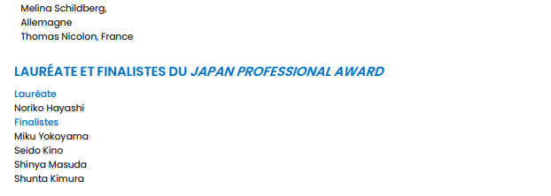 Professional. La première lauréate du Japan Professional Award est Noriko Hayashi pour